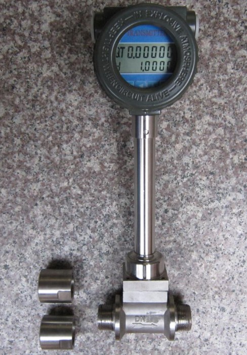 由上式可見,VSF輸出的脈沖頻率信號(hào)不受流體物性和組分變化的影響,即儀表系數(shù)在一定雷諾數(shù)范圍內(nèi)僅與旋渦發(fā)生體及管道的形狀尺寸等有關(guān)。但是作為流量計(jì)在物料平衡及能源計(jì)量中需檢測質(zhì)量流量,這時(shí)流量計(jì)的輸出信號(hào)應(yīng)同時(shí)監(jiān)測體積流量和流體密度,流體物性和組分對(duì)流量計(jì)量還是有直接影響的。