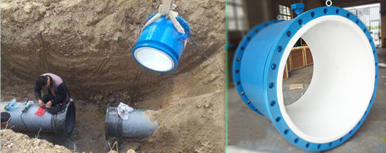 安裝過程的保護(hù):傳感器吊裝時必須保護(hù)好襯里,防止被安裝現(xiàn)場尖銳硬物刺傷,防止焊接或火焰切割等各種熱源使傳感器襯里受熱損壞。在傳感器及連接管路全部安裝完成之前,轉(zhuǎn)換器不能連接信號線,避免損壞轉(zhuǎn)換器。