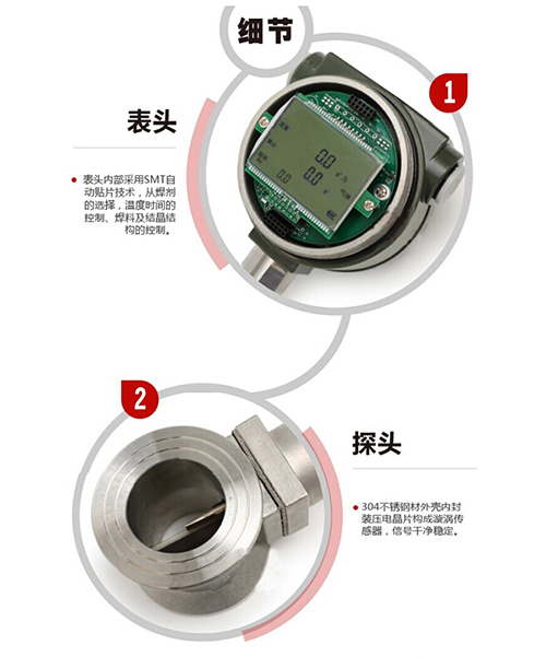 1、表體中同時集成溫壓補償補償功能,可測量流體的標準體積流量或標準質量流量。
