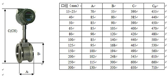 法蘭式渦街流量計:DN15、DN20、DN25、DN32、DN40、DN50、DN65、DN80、DN100、DN125、DN150、DN200、DN250、DN300。