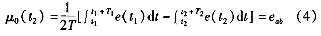 冷熱水流量計(jì)一般都采用工頻交流電源供電,其電源電壓的幅值和頻率的變化都會(huì)給冷熱水流量計(jì)帶來電源性干擾噪聲。對(duì)電源電壓的幅值變化,因采用多級(jí)集成穩(wěn)壓,一般而言電源電壓的幅值變化對(duì)電磁流量的測量精度影響不大。當(dāng)電源電壓的頻率波動(dòng)時(shí),雖然其波動(dòng)范圍有限,但對(duì)冷熱水流量計(jì)測量精度影響較大。為了解決工頻干擾問題,實(shí)現(xiàn)對(duì)流體流速感應(yīng)電勢(shì)e柚信號(hào)的準(zhǔn)確測量,需利用以下基本關(guān)系:①勵(lì)磁周期為工頻周期的整數(shù)倍,即勵(lì)磁頻率為50/nHz(n為偶數(shù));②正負(fù)勵(lì)磁下的同相位采樣。圖2是對(duì)應(yīng)低頻矩形波勵(lì)磁形式下的典型電勢(shì)信號(hào)形式,按上述關(guān)系在一個(gè)勵(lì)磁周期下,若假設(shè)t。和t:點(diǎn)為工頻干擾的等效干擾點(diǎn),且采樣寬度T=T1=T2,則e –ab的基本算式為:,