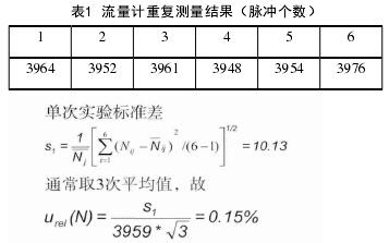 輸入量Ni的不確定度來源主要是流量計測量的不重復(fù)性,采用A類評定方法評定。