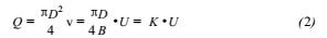 式(1)說明,導(dǎo)體在磁場內(nèi)作切割磁力線運(yùn)動(dòng),導(dǎo)體兩端產(chǎn)生的感應(yīng)電動(dòng)勢的大小與磁感應(yīng)強(qiáng)度B成正比,與導(dǎo)體的長度D成正比,與導(dǎo)體運(yùn)動(dòng)的速度v成正比。由式(2)可知液體的體積流量與感應(yīng)電動(dòng)勢成正比,這就是印染廢水流量計(jì)的設(shè)計(jì)原理。