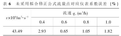 為證明該高粘度變流速自適應(yīng)算法及公式的有效性,重新選取四個(gè)流量點(diǎn):0.4m3/h、0.6m3/h、0.8m3/h、1.0m3/h對該公式以及算法進(jìn)行精度驗(yàn)證,得到表4數(shù)據(jù),表5為各對應(yīng)流量點(diǎn)的擬合后儀表系數(shù)的誤差。