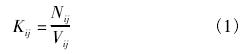式中:Kij為*i檢定點*j次檢定的儀表系數(shù),L-1或(m3)-1,其中,i=1,2,3,…,m,m為檢定點數(shù),m≥3,j=1,2,3,…,n,n為檢定次數(shù),n≥3;Nij為*i檢定點*j次檢定時流量計顯示儀表測得的脈沖數(shù);Vij為*i檢定點*j次檢定時標準裝置測得的實際流量,L或m3。