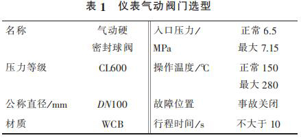 1) 溫壓補償蒸汽流量計出口管線總閥泄漏無法在線處理,導致氣化爐停車。在入氣化爐根部增加 2 臺儀表氣動閥門,要求每月進行 2 次開、關(guān),防止閥門出現(xiàn)卡塞現(xiàn)象。 新增 2 臺儀表氣動閥門相關(guān)參數(shù)見表 1。