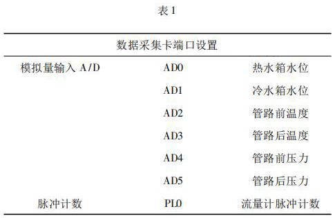 數(shù)據(jù)采集系統(tǒng)由工控機(jī)、煤油流量計以及數(shù)據(jù)采集卡組成。 4000 次冷熱沖擊試驗要求在在*大流量 qs 條件下運(yùn)行,對流量數(shù)據(jù)的采集用到煤油流量計及數(shù)據(jù)采集卡。煤油流量計采集管路流量,數(shù)據(jù)采集卡將煤油流量計采集到的數(shù)據(jù)反饋給工控機(jī)系統(tǒng)。過程中,試驗管路水溫以及水箱水位的采集控制也是通過數(shù)據(jù)采集卡反饋給系統(tǒng)控制。試驗過程用到的數(shù)據(jù)采集卡采用研華生產(chǎn)的PCI - 1711。PCI - 1711 是一款多功能 PCI 總線數(shù)據(jù)采集卡,具有 16 路單端模擬量輸入功能、2 路 12位模擬量輸出功能、16 路數(shù)字輸入和 16 路數(shù)字輸出功能、計數(shù)器功能等。為保證冷熱沖擊試驗結(jié)果的準(zhǔn)確性,嚴(yán)要求嚴(yán)格控制管路流量以及管路壓力。因此,管路設(shè)置前后管路溫度、冷熱水箱水位以及管路壓力的采集,管路流量根據(jù)煤油流量計脈沖計數(shù)進(jìn)行采集,其數(shù)據(jù)采集卡端口設(shè)置如表 1 所示。