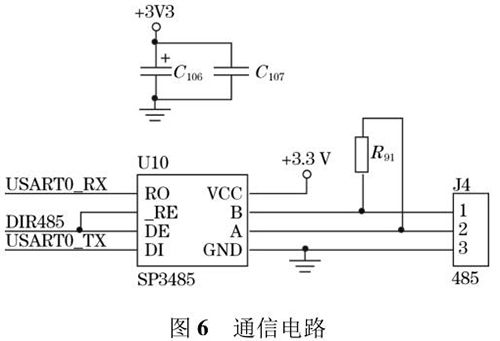 煤焦油流量計輸出的流量值可以通過外接的 TFTLCD 屏直接顯示,還可以通過預(yù)留的 RS485 通信接口將數(shù)據(jù)發(fā)送到上位機中。RS485 電路*大的優(yōu)點是 485 電平與 TTL 電平兼容,方便與 TTL 電路相連;抗共模干擾能力強;數(shù)據(jù)傳輸速度快,高達 10 Mbps;通信距離遠,*大為 1.2 km。系統(tǒng)采用 SP3485 芯片進行數(shù)據(jù)通信,SP3485 是一款低功耗芯片且符合RS485 協(xié)議的收發(fā)器,電路圖如圖 6 所示。