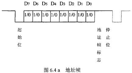 花生油流量計等節(jié)點設(shè)備和站內(nèi)PC機間的通信采用異步串行通訊控制規(guī)程,并采用地址位喚醒握手協(xié)議。因此在協(xié)議中規(guī)定了傳地址和傳數(shù)據(jù)兩種不同的幀格式,如圖.64所示。地址幀和數(shù)據(jù)幀由11位構(gòu)成,幀格式為l位起始位,l位停止位,8位數(shù)據(jù)位,1位*9位。我們將*9位設(shè)定為“地址/數(shù)據(jù)指示位”,用來區(qū)分所發(fā)送/接受的幀信息是地址幀還是數(shù)據(jù)幀。*9位為1,表示PC機發(fā)送/接受的是“地址幀”*9位為O,表示主機發(fā)送/接受的是“數(shù)據(jù)幀”。命令幀與校驗和的發(fā)送格式與數(shù)據(jù)幀相同,因此可由數(shù)據(jù)幀演化得到。