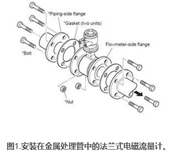 圖1.安裝在金屬處理管中的法蘭式稀硫酸流量計(jì)。