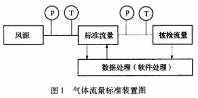 從風(fēng)源排出的具有--定流量的空氣經(jīng)標(biāo)準(zhǔn)表和被檢流量計(jì)時(shí),在標(biāo)準(zhǔn)表中即產(chǎn)生一定頻率的電脈沖信號(hào),經(jīng)與之配合的二次顯示儀表輸人電路放大整形后,送人系數(shù)單元,把脈沖單位轉(zhuǎn)換為流量單位,再送入顯示單元進(jìn)行累計(jì)量的數(shù)字顯示,然后通過(guò)介質(zhì)換算系數(shù)及溫度、壓力等全面修正得出流經(jīng)標(biāo)準(zhǔn)表的標(biāo)準(zhǔn)質(zhì)量流量,再通過(guò)與被檢表的指示質(zhì)量流量進(jìn)行比較,即可得出被檢表在該流量下的相對(duì)誤差。