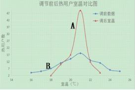 我公司在該小區(qū)管網(wǎng)改造前,在不同單元不同樓層分別安裝100臺(tái)室溫采集器。渦街流量計(jì)調(diào)前數(shù)據(jù)采集于2017~2018年供熱期,調(diào)后數(shù)據(jù)采集于2018~2019年供熱期。經(jīng)過(guò)兩個(gè)采暖期,共有96臺(tái)室溫采集器可以正常提供數(shù)據(jù)。數(shù)據(jù)分析結(jié)果見(jiàn)圖3所示。
