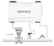 二是采用蒸汽流量積算儀,將渦街氣體流量計(jì)所測(cè)工況體積流量以及溫度和壓力變送器所測(cè)信號(hào)傳到蒸汽流量積算儀,如圖 2 所示由蒸汽流量積算儀進(jìn)行補(bǔ)償運(yùn)算。蒸汽流量積算儀內(nèi)置過(guò)熱蒸汽以及飽和蒸氣補(bǔ)償算法,可以輸出質(zhì)量流量、標(biāo)準(zhǔn)體積流量甚至熱量和比焓等。
