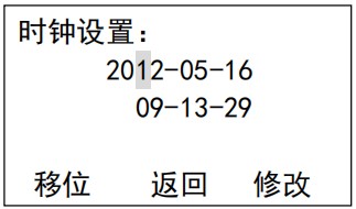 設(shè)置界面 13: 時鐘設(shè)置,校準(zhǔn)當(dāng)前運行的日期和時間,此參數(shù)出廠時已校準(zhǔn),設(shè)置影響記錄的保存和查詢,在運行前務(wù)必確認(rèn)是正確的當(dāng)前日期,如錯誤將造成記錄保存的混亂。