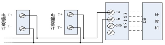 手操器與污水流量計(jì)量表連接如下圖所示: