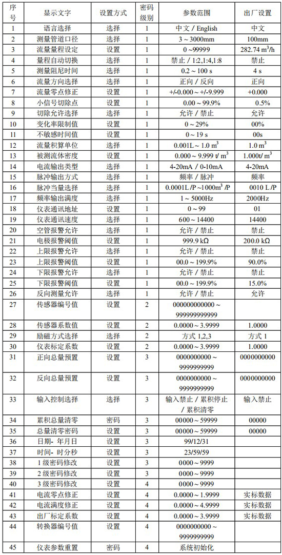 LDG 智能系列污水流量計(jì)量表編碼一覽表