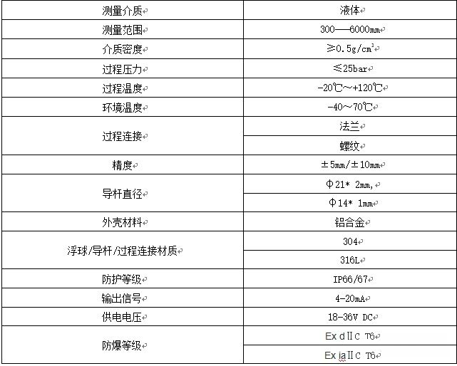 二、遠(yuǎn)傳浮球液位計(jì)的參數(shù)