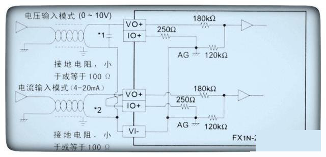 上圖是三菱PLC的一塊模擬量輸入模塊,只有兩種模擬量信號(hào)輸入,一路是電壓信號(hào)輸入、一路是電流信號(hào)輸入模,而且此模塊不能同時(shí)用于兩種信號(hào)工作。由題目可知現(xiàn)場(chǎng)超聲波液位計(jì)輸出的是電流信號(hào),因此將模擬量輸入模塊選擇電流信號(hào)輸入模式。由于使用的是電流信號(hào)輸入模式,要將圖中所示的VO+和IO+進(jìn)行短接。而VI-是接電壓信號(hào)或電流信號(hào)的公共端子。