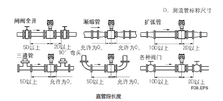 ⑻如流體有渦流與流場(chǎng)畸變;可增加入口與出口處直管段長(zhǎng)度或安裝整流器。